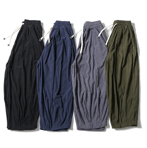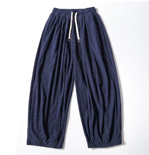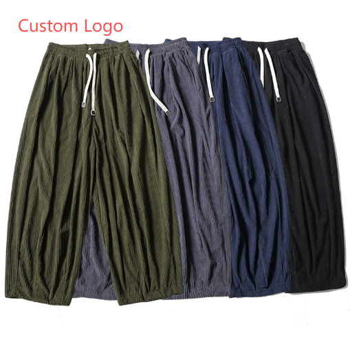 กางเกงขายาวบุขนหนานุ่มสำหรับผู้ชาย ผ้าลูกฟูก ไซส์ใหญ่ ทรงหลวม ขากว้าง กางเกงลำลองสำหรับฤดูใบไม้ร่วงและฤดูหนาว