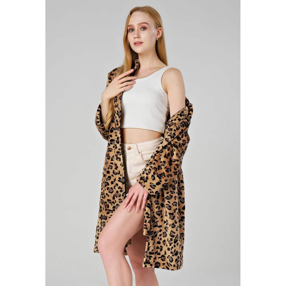 เสื้อคลุมขนแกะสำหรับผู้หญิง ซิปด้านหน้า ยาวถึงเข่า แขนยาว ชุดนอนแสนสบาย ชุดนอนสำหรับผู้หญิง