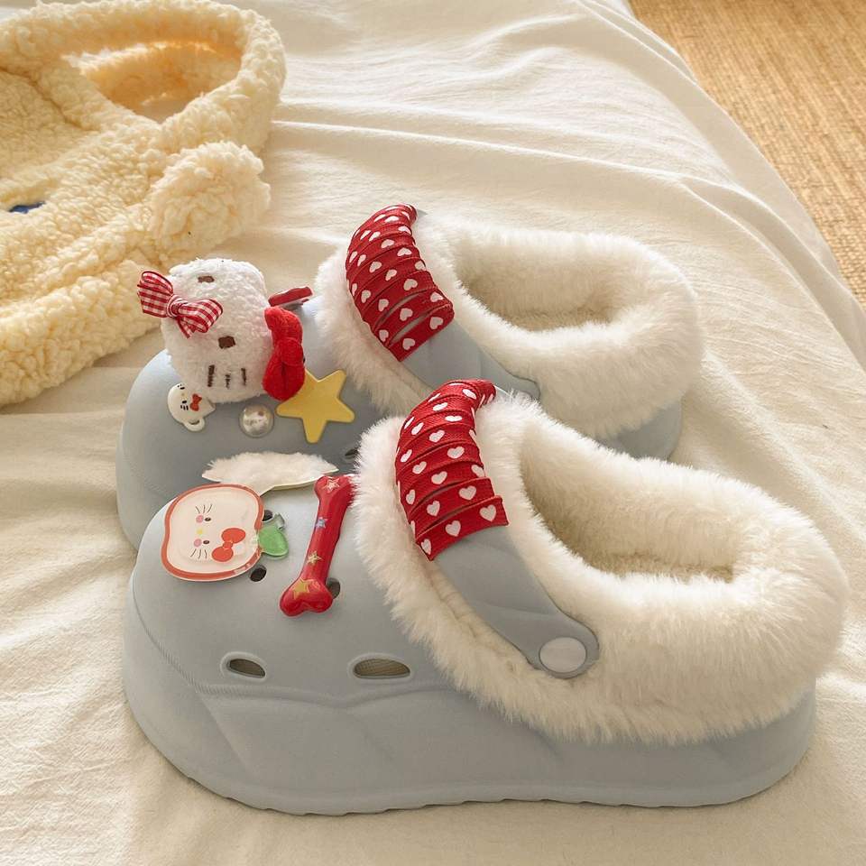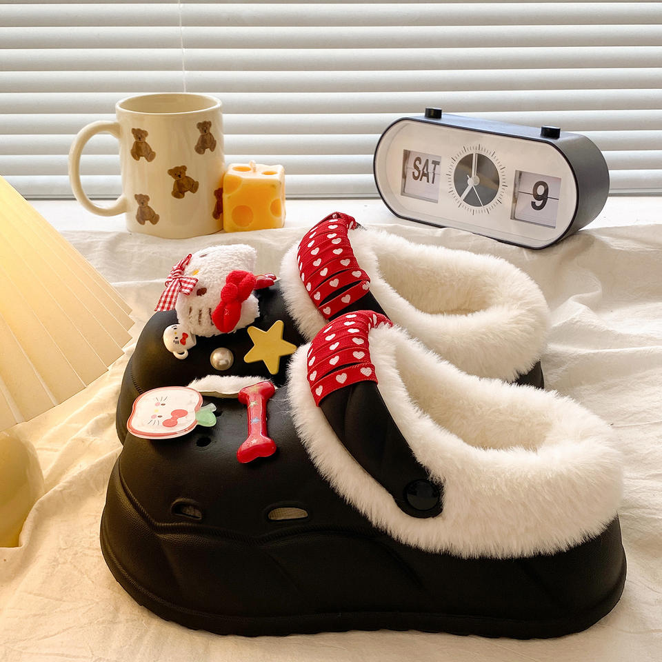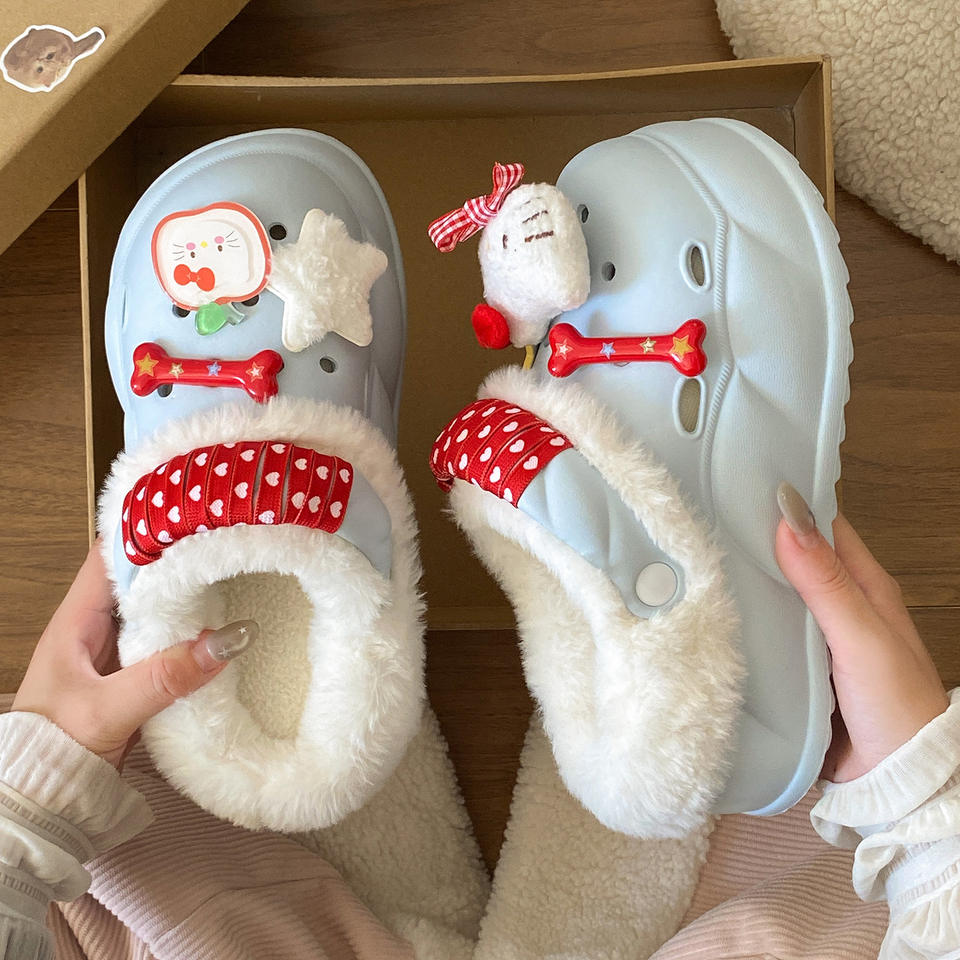 รองเท้าแตะแบบสวมครึ่งเท้าบุขนแกะสำหรับผู้หญิง รุ่นใหม่ปี 2025 สำหรับฤดูใบไม้ผลิ ฤดูใบไม้ร่วง ฤดูหนาว พื้นหนาสองชั้น ทำจากผ้าขนสัตว์และผ้าฝ้าย อุ่นสบาย เหมาะสำหรับใส่กลางแจ้ง ด้านบนบุขนกำมะหยี่