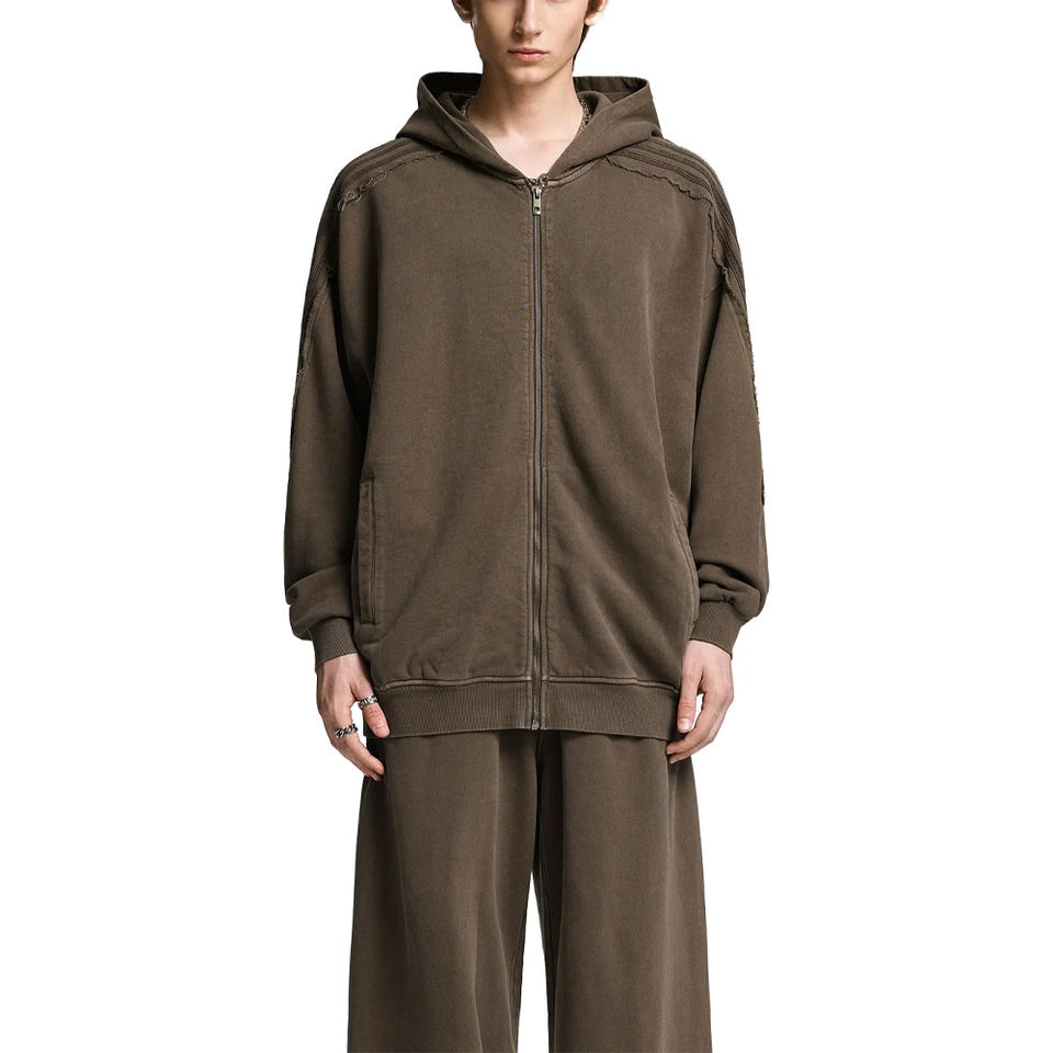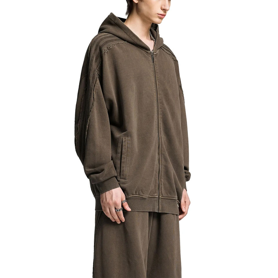เสื้อฮู้ดซิปผ้าฟลีซ 100% คอตตอน 500gsm ซิปเต็มตัว ทรงบ็อกซี่ ผู้ชาย แบบเรียบ บริการ OEM สั่งทำโลโก้แบรนด์ด้านหน้าได้