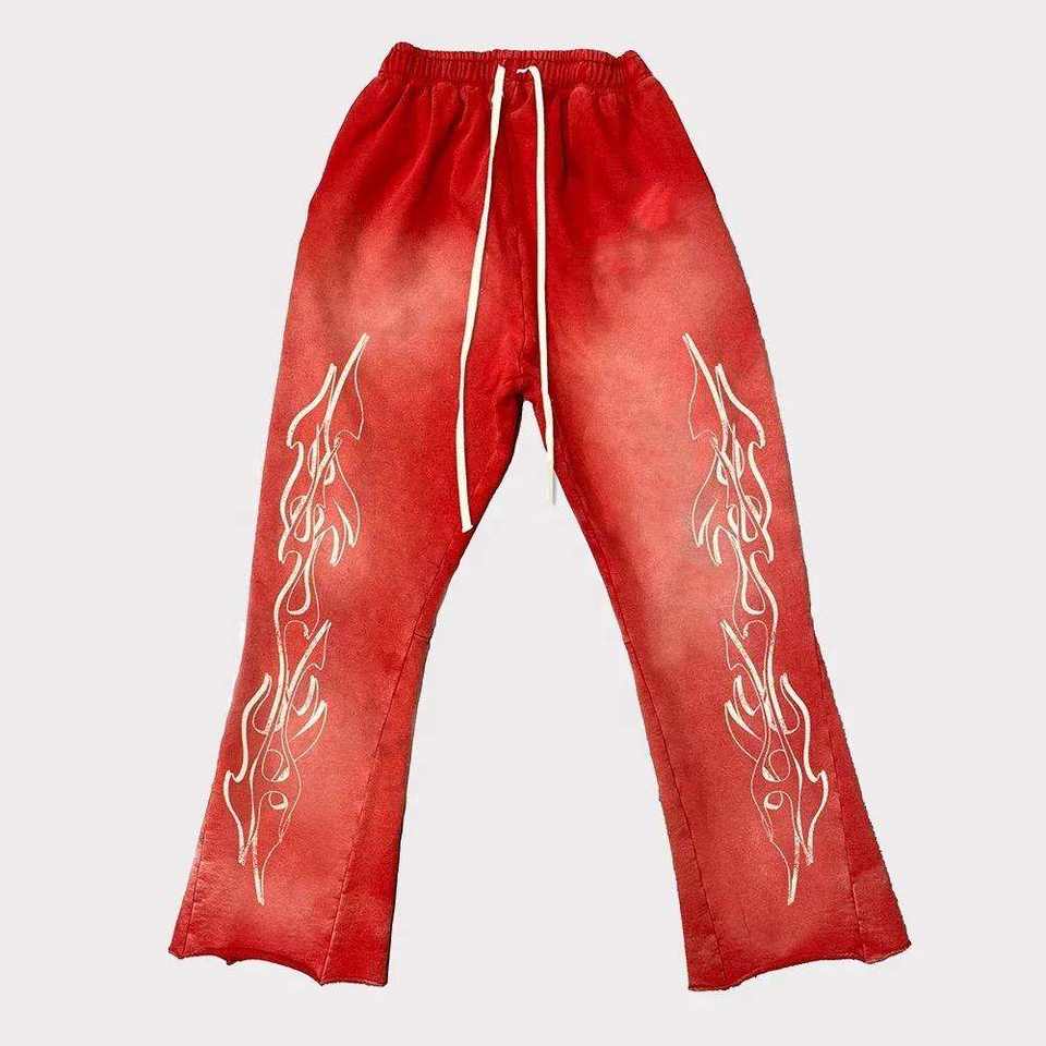 กางเกงวิ่งขายาวสำหรับผู้ชายกางเกงวิ่งจ็อกกิ้งกางเกงผ้าฟลีซผ้าคอตตอนพิมพ์ลายแบบลำลองแนววินเทจแบบ100%