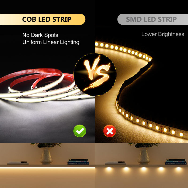 ไฟแถบ LED แบบยืดหยุ่น 24V Cob 480 หลอด LED สองด้าน พร้อมเทปกาว VHB 3M ความสว่าง 12W/เมตร ขนาด 10 มม. IP20 6500K สำหรับใช้ภายในอาคาร