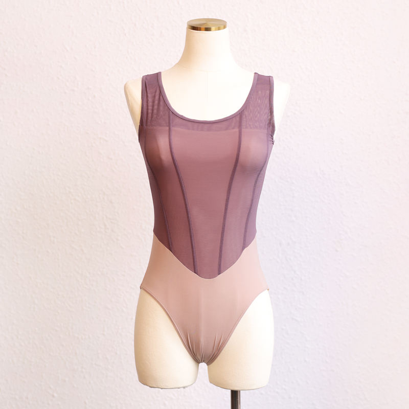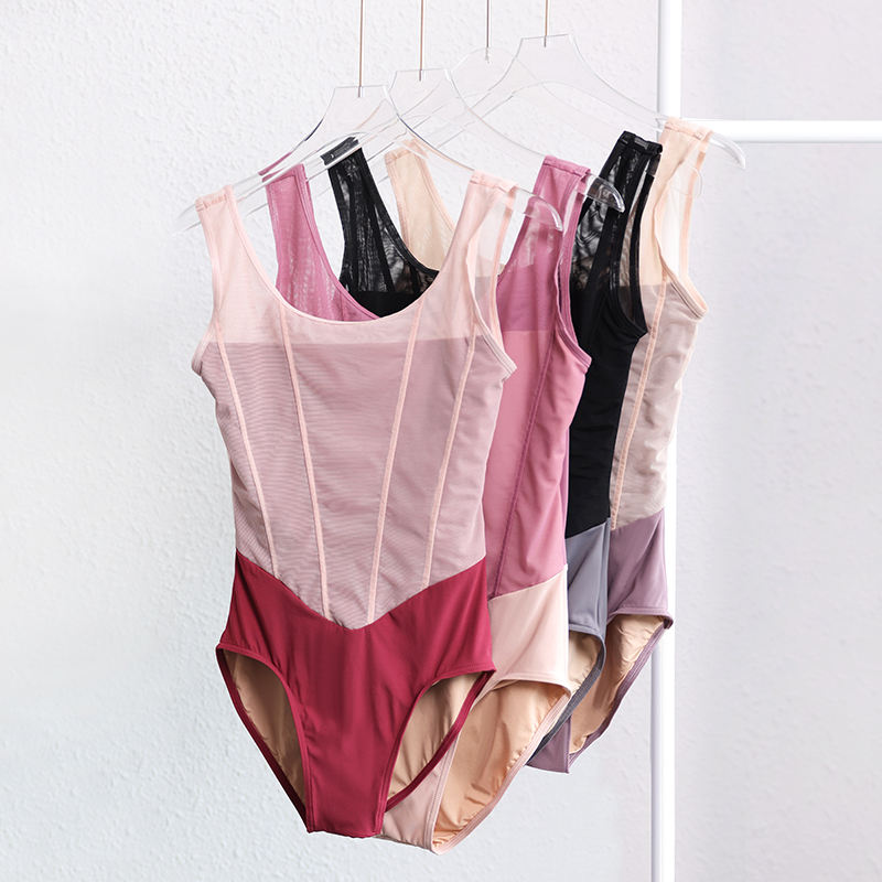 ชุดฝึกซ้อมบัลเลต์แบบมืออาชีพที่ยืดหยุ่นได้ - ผ้าตาข่ายประดับอย่างสวยงามในโทนสีลาเวนเดอร์และสีบลัชออน