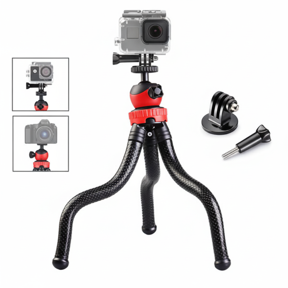 ขาตั้งกล้องซิลิโคนแบบยืดหยุ่นสำหรับกล้องดิจิตอลพร้อมระบบล็อคแบบหมุน ดีไซน์พกพาสะดวกสำหรับโกโปรและกล้องแอคชั่นอื่นๆ
