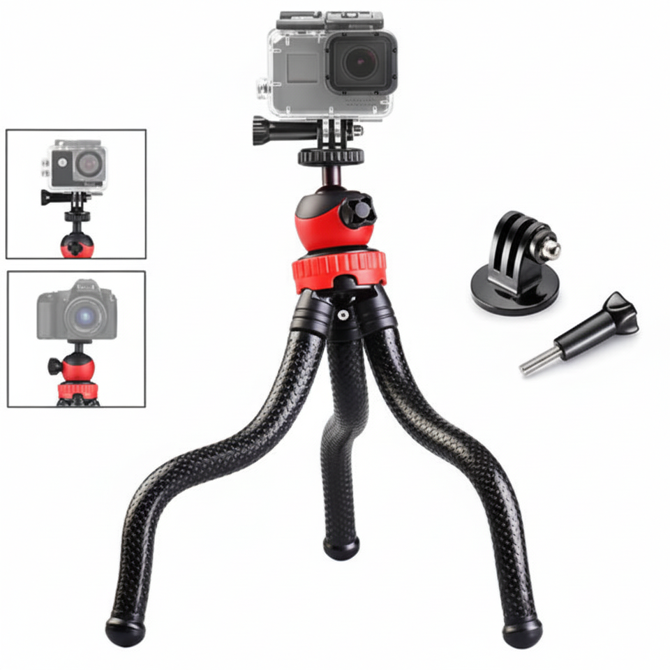 ขาตั้งกล้องซิลิโคนแบบยืดหยุ่นสำหรับกล้องโกโปรพร้อมระบบล็อคแบบหมุนได้ ดีไซน์พกพาสะดวก ใช้ได้กับกล้องดิจิตอล