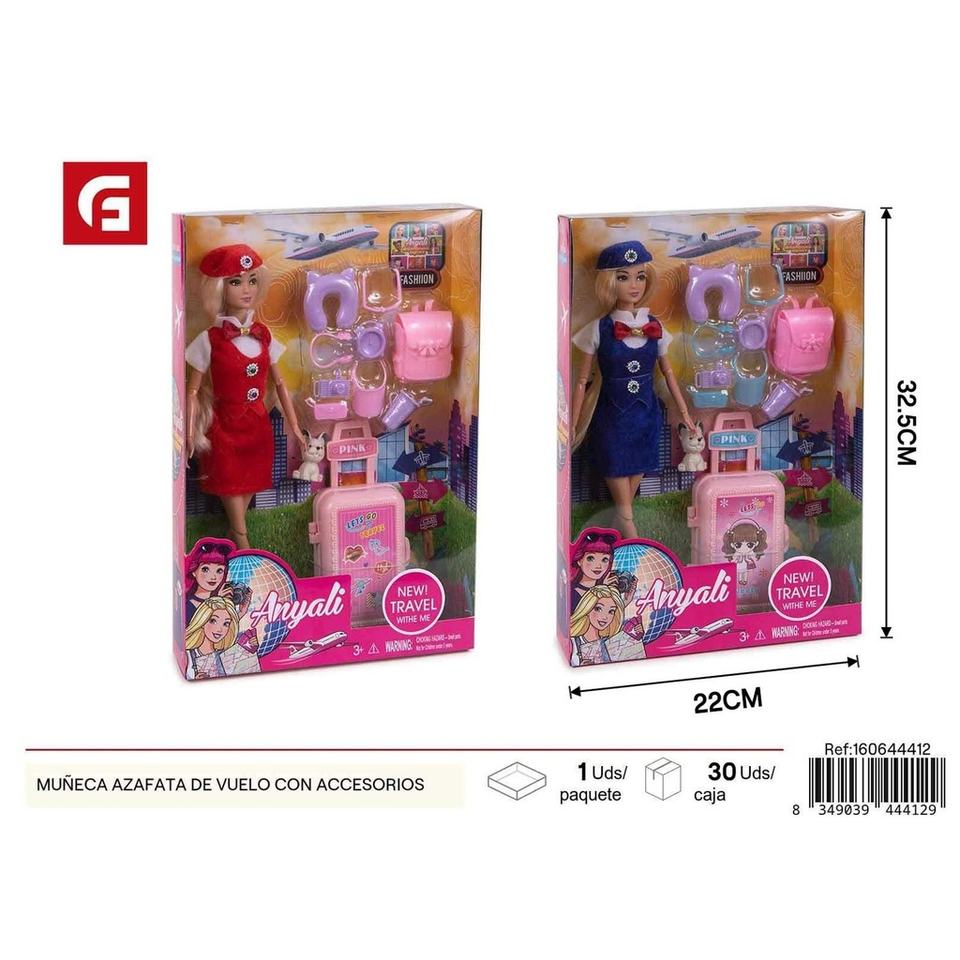 ตุ๊กตาพนักงานต้อนรับบนเครื่องบินพร้อมอุปกรณ์เสริม-ตุ๊กตาและของเล่น