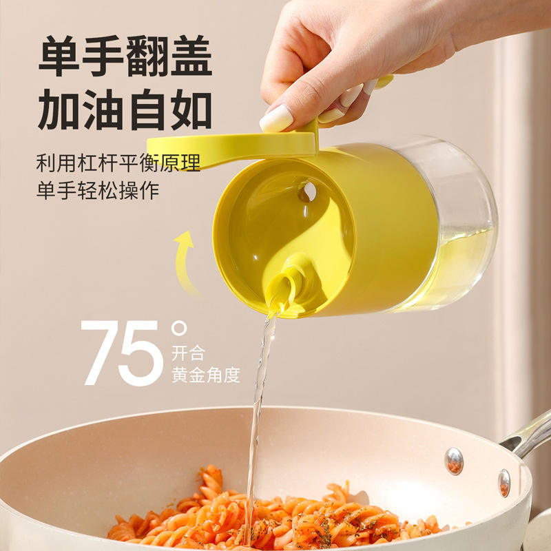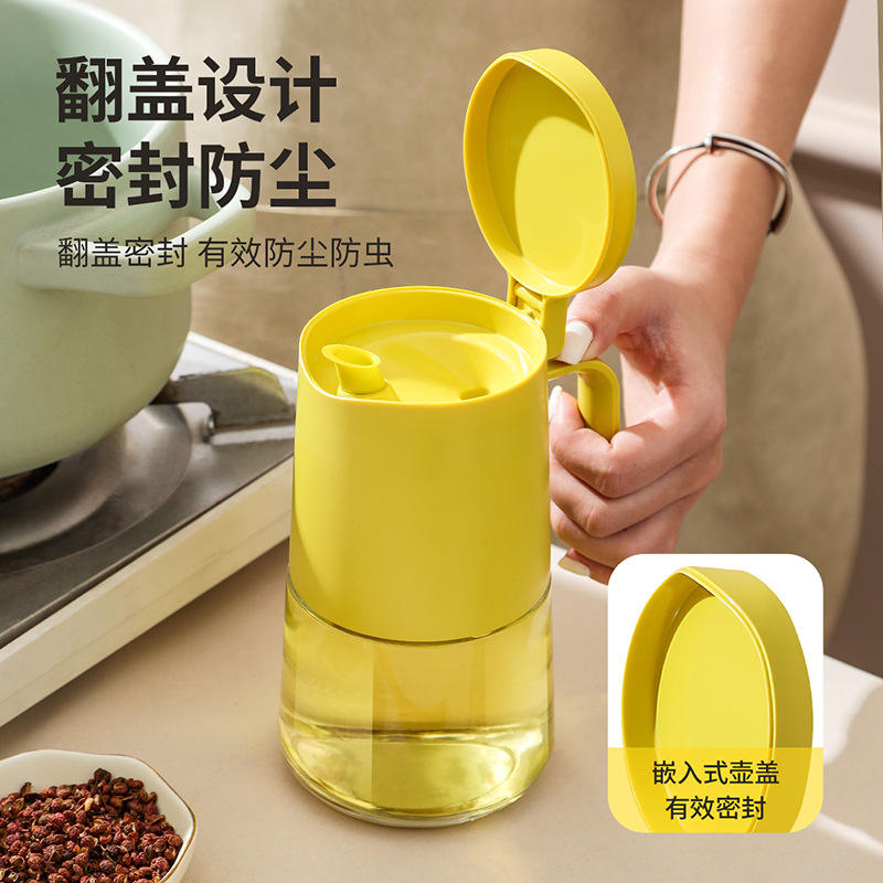 ขวดน้ำมันแก้วแบบพลิกเปิดได้ ความจุขนาดใหญ่ ปิดสนิท ป้องกันการรั่วซึม ป้องกันฝุ่น สำหรับใช้ในบ้าน