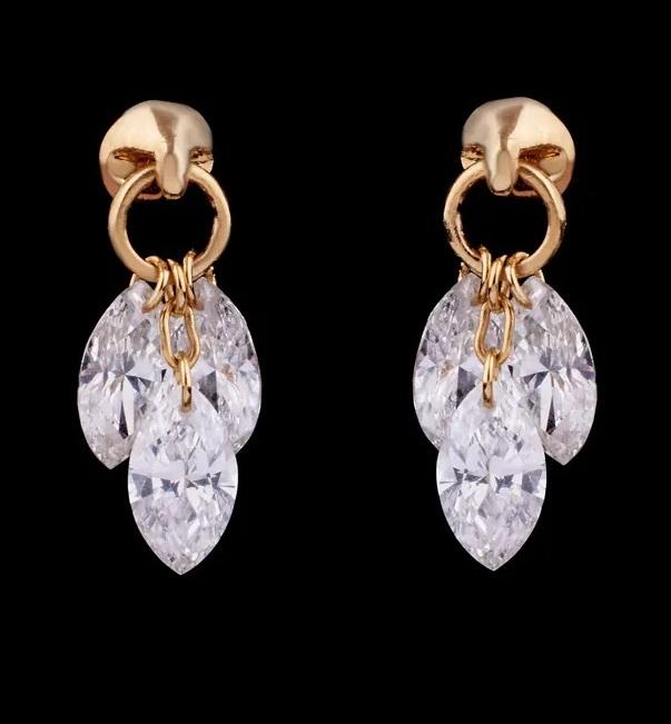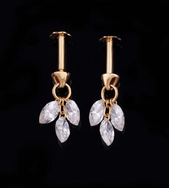 ต่างหูตุ้งติ้งทรงโค้งสีโรสโกลด์18K ประดับเพชรเม็ดเล็กประดับเพชร