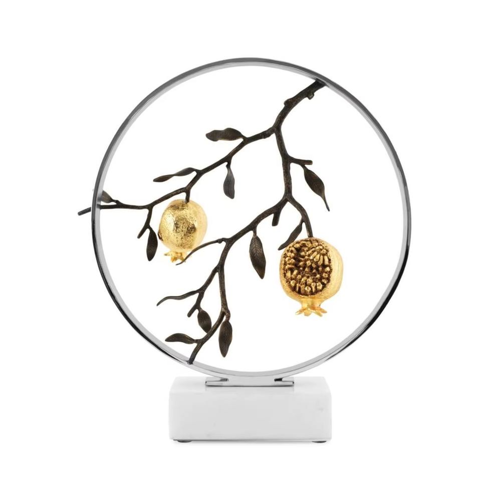 ประติมากรรมใบแปะก๊วยลอยน้ำ ทำจากทองเหลืองบนฐานหินอ่อนสีขาว เหมาะสำหรับตกแต่งบ้าน จัดแสดงงาน และเป็นของขวัญ