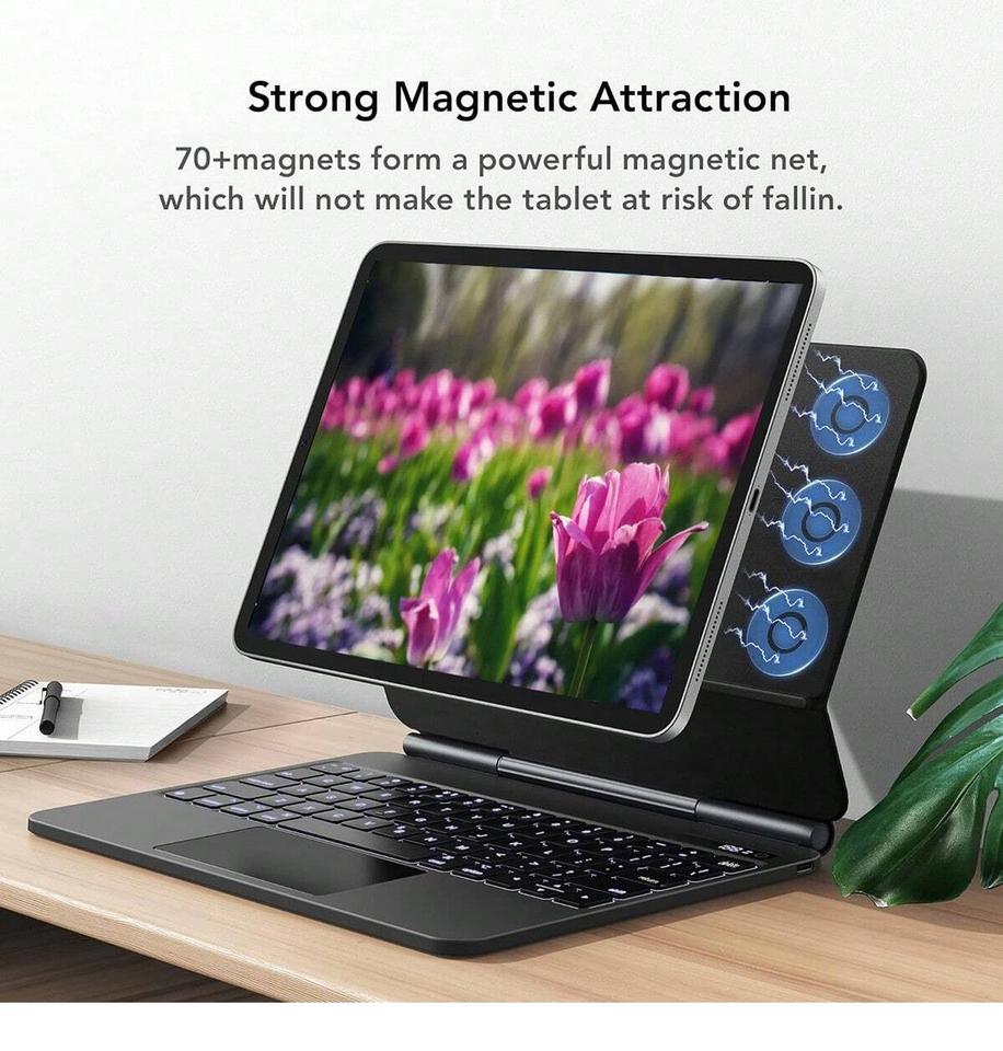 เคสหนัง TPU พร้อมคีย์บอร์ดแม่เหล็กแบบลอยได้สำหรับ iPad Pro, iPad Air 4, 5, 6, 7 ขนาด 10.9 นิ้ว และ 11 นิ้ว คีย์บอร์ดไร้สายแบบบลูทูธ