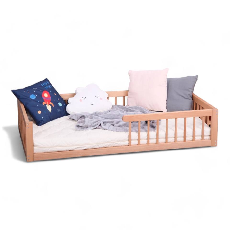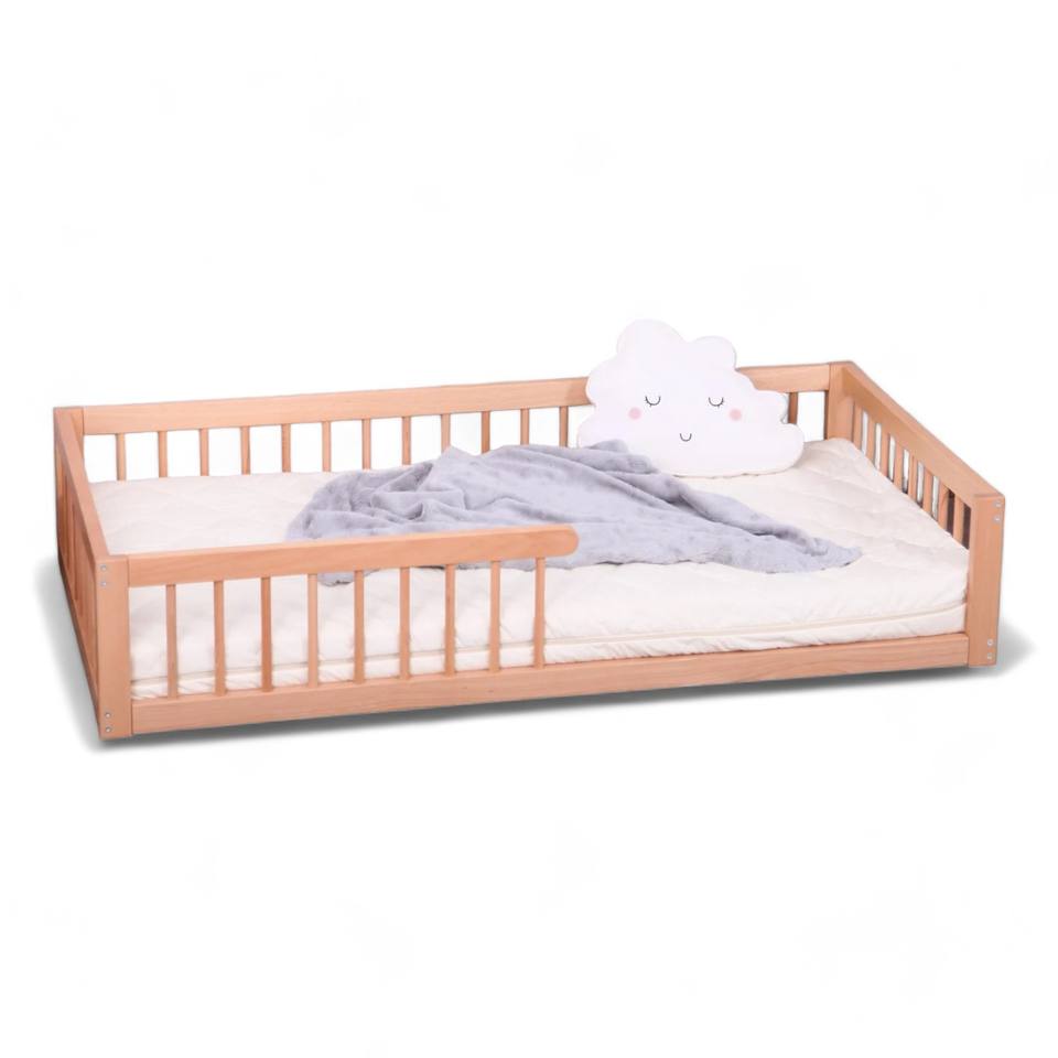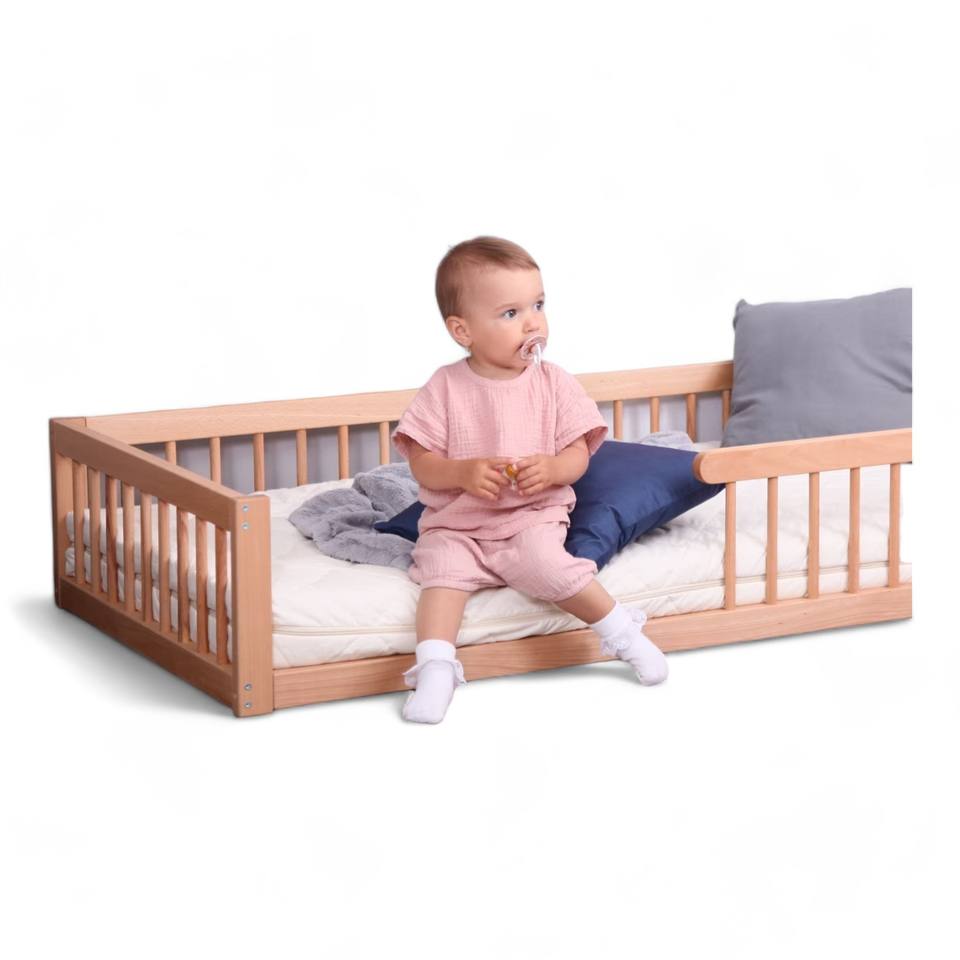 เตียงเด็กอ่อนไม้มะฮอกกานีแบบลอยตัว ประกอบง่าย ดีไซน์ปลอดภัย ทันสมัย สำหรับใช้ในห้องนอน