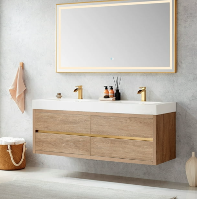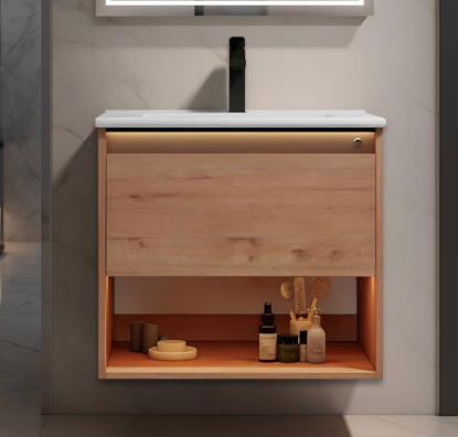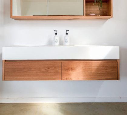 โต๊ะเครื่องแป้งไม้ลอยตัวพร้อมรางเก็บเครื่องประดับในตัว