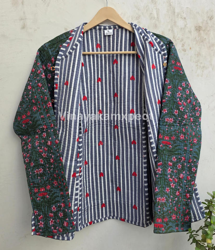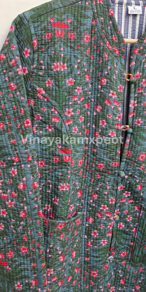 Flock Print Embroidery Knitted Quilted Boho Green Floral Jacket Soft Cotton Breathable Eco-Friendly Winter Warm Comfortable Fit