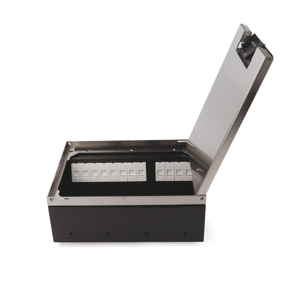 กล่องติดตั้งใต้พื้นพร้อมพอร์ต RJ45, USB, มัลติมีเดีย และพอร์ตจ่ายไฟ สำหรับการเชื่อมต่อสมาร์ทโฮมและสำนักงาน