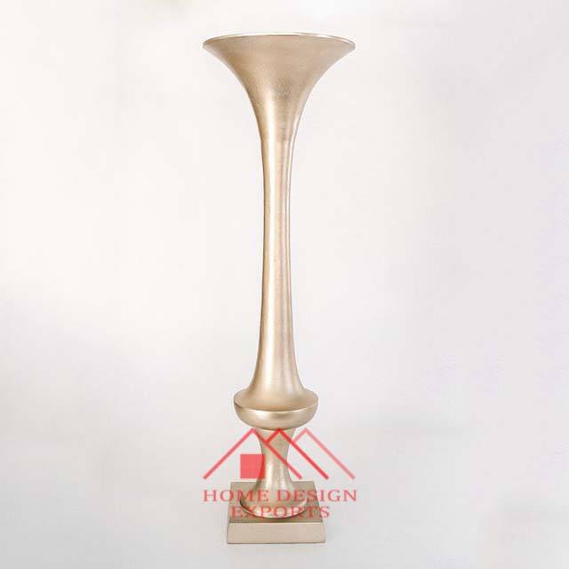 แจกันดอกไม้ตั้งพื้นสำหรับตกแต่งงานแต่งงาน แจกันทรงแตรอลูมิเนียมขนาดใหญ่ขายดีที่สุดสำหรับตกแต่งกลางโต๊ะ