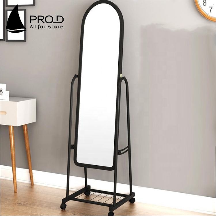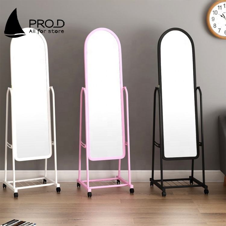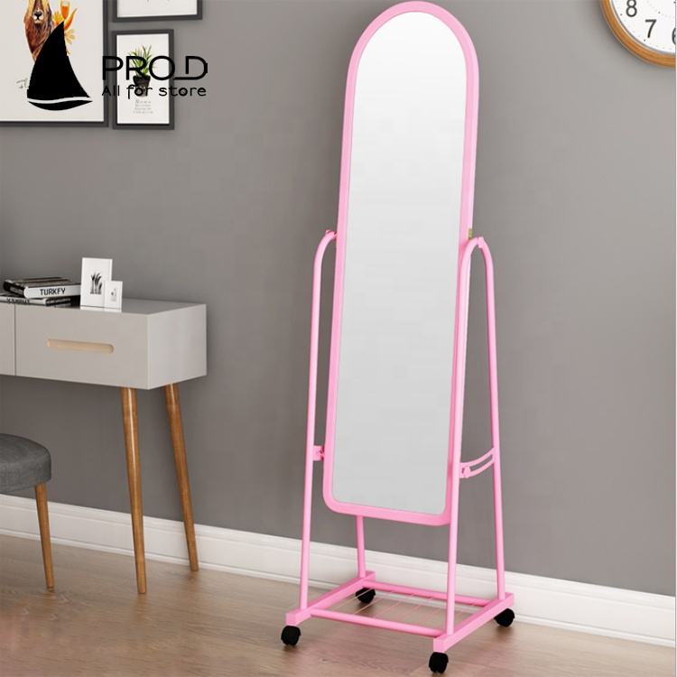 กระจกแต่งตัวชั้นพร้อมกรอบโลหะในร้านขายเสื้อผ้ากระจกตั้งพื้นสำหรับห้องนอนกระจกเต็มความยาวพร้อมรอก