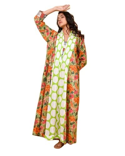 เดรสแม็กซี่ยาวสำหรับผู้หญิงเดรสทำมือแขนสามส่วนคอวียาวถึงพื้นสำหรับฤดูใบไม้ผลิ