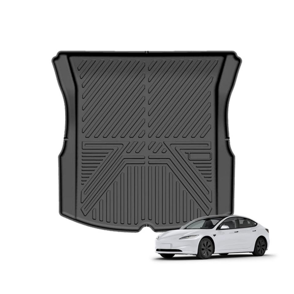 แผ่นรองพื้นรถยนต์ Tesla Model 3 แบบเต็มชุด กันลื่น กันน้ำ ทำจากวัสดุ TPE พร้อมแผ่นรองท้ายรถยนต์ รับประกัน 1 ปี