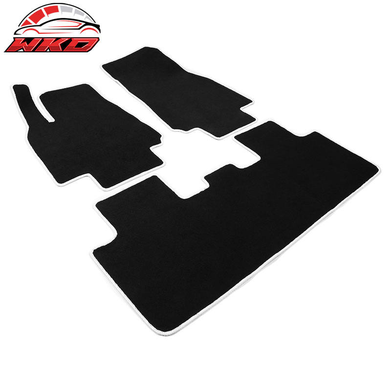 พรมปูพื้นรถยนต์เทสล่า รุ่น Y ปี 20-24 แบบกำมะหยี่สีดำขอบสีขาว สำหรับด้านหน้าและด้านหลัง
