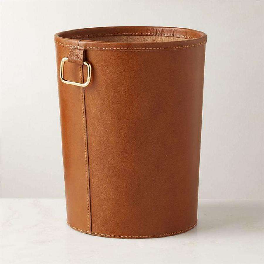 ถังขยะแบบตั้งพื้นแบบพกพา น้ำหนักเบา โลหะ หนังแท้ ถังขยะตกแต่งบ้าน ของตกแต่งภายในบ้าน
