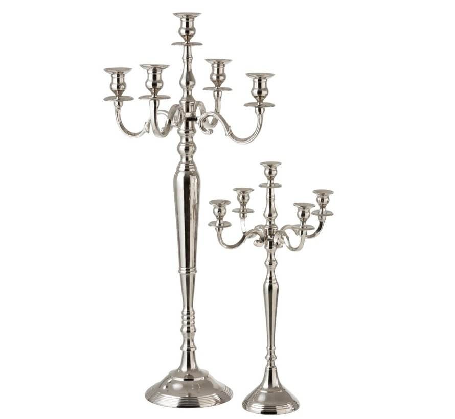 เชิงเทียนอะลูมิเนียมแบบตั้งพื้น 5 แขน สีเงิน ทำด้วยมือ ทรงกลม มีขนาดสั่งทำได้ สำหรับตกแต่งบ้าน งานแต่งงาน โต๊ะ