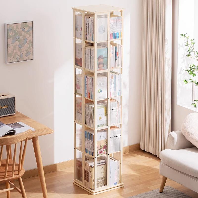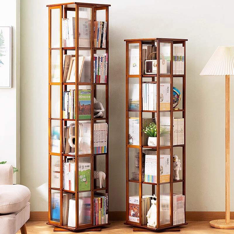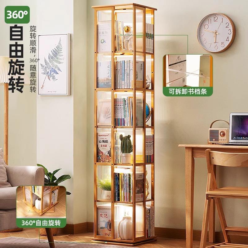 ชั้นวางหนังสือไม้ไผ่หมุนได้ ชั้นวางของในห้องนั่งเล่นขนาดเล็ก พร้อมไฟในตัว ดีไซน์หรูหรา สำหรับหนังสือภาพเด็ก ปรับแต่งได้