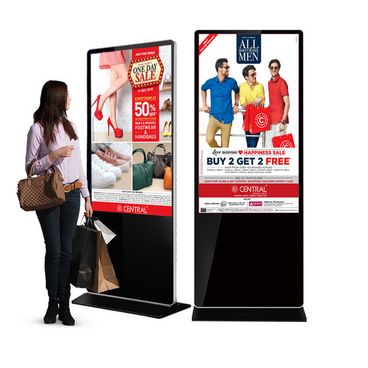 ชั้นยืนโฆษณาหน้าจอสัมผัสจอแอลซีดีแสดงผลโฆษณาวิดีโอเล่นโฆษณาป้ายดิจิตอล