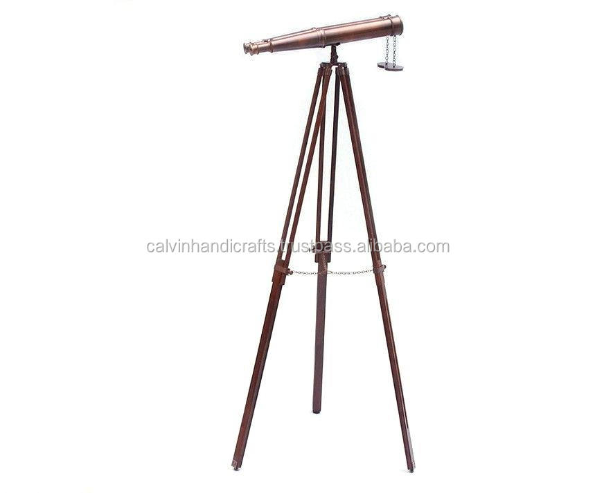 กล้องส่องทางไกลทองแดงโบราณพร้อมขาตั้งไม้แบบใหม่สำหรับให้เป็นของขวัญ