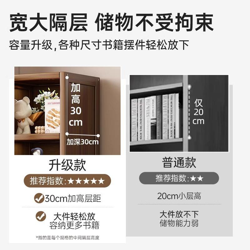 ตู้หนังสือแบบตั้งพื้นพร้อมบานประตู ตู้เก็บของในบ้าน ชั้นวางของหลายชั้นสำหรับห้องนั่งเล่น ชั้นวางหนังสือไม้พร้อมแผงด้านหลัง