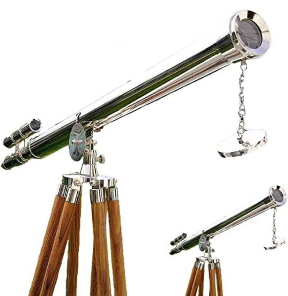 ขาตั้งกล้องโทรทรรศน์ทำจากทองเหลืองโบราณสำหรับกล้องส่องทางไกลใต้ทะเลแบบยืนทำจากไม้คุณภาพสูง