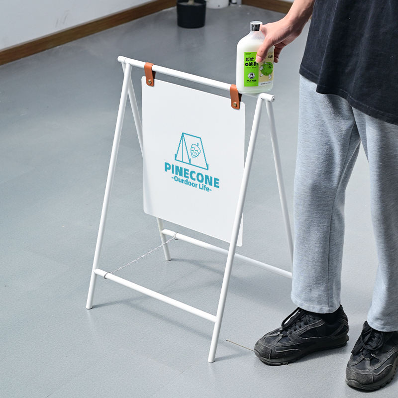 ป้ายโฆษณาพับได้พื้นถึงพื้นป้ายโลโก้กรอบโลหะที่กำหนดเองสำหรับการออกแบบร้านค้าชั้นวางโฆษณา