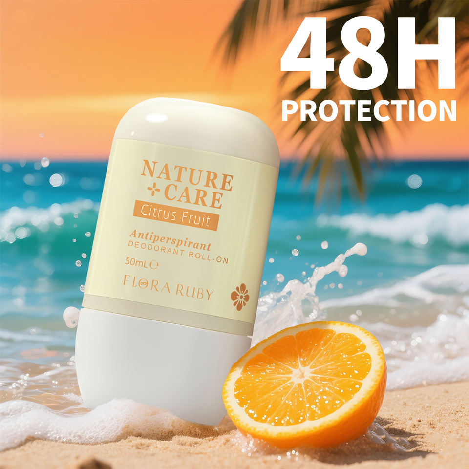 โรลออนระงับกลิ่นกายฟลอร่า รูบี้ 50 มล. สูตรธรรมชาติ ป้องกันเหงื่อ กลิ่นหอมติดทนนาน กลิ่นชาเขียว ทับทิม และคาโมมายล์