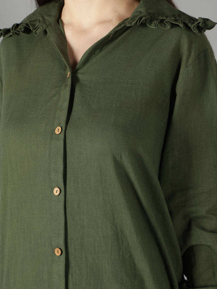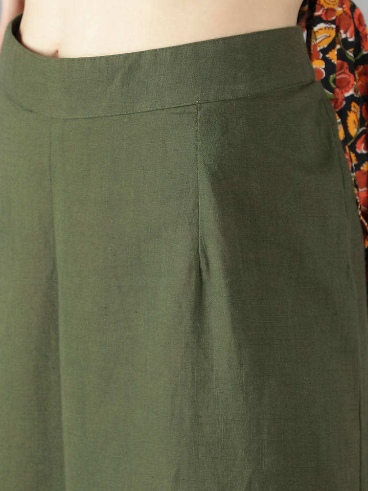 ชุดสองชิ้นเสื้อกางเกงสองชิ้นผูกด้านหลังลายดอกไม้สีเขียวมะกอกมีคอเสื้อและแขนเสื้อสำหรับฤดูใบไม้ผลิ
