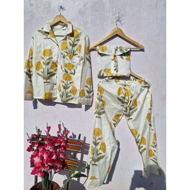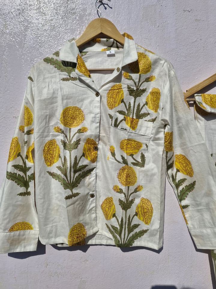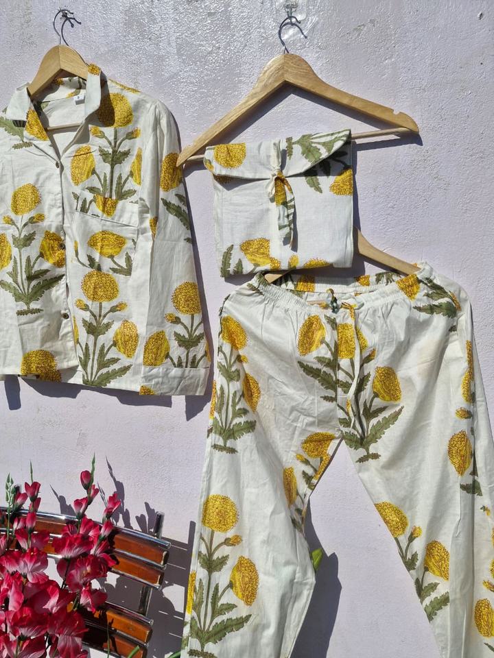 ชุดนอนผ้าฝ้ายพิมพ์ลายดอกไม้สำหรับผู้หญิง | ชุดนอนลายทางอินเดียทำมือ | ชุดนอนผ้ามัสลินเนื้อนุ่ม