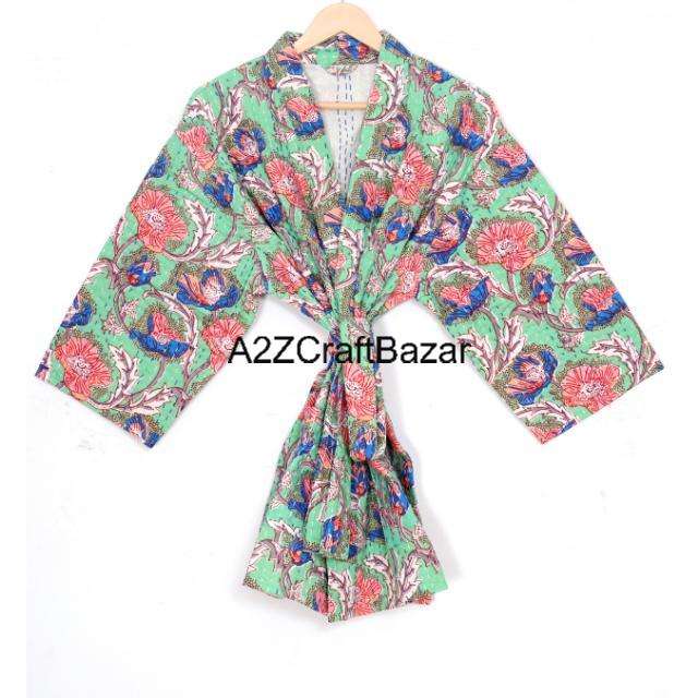 เสื้อแจ็คเก็ตคอวีแบบกลับด้านได้ ระบายอากาศได้ดี ลายดอกไม้ ผ้าควิลท์ สำหรับผู้หญิงไซส์ใหญ่ ผ้าฝ้าย ทรงกิโมโน ลายพิมพ์ดอกไม้