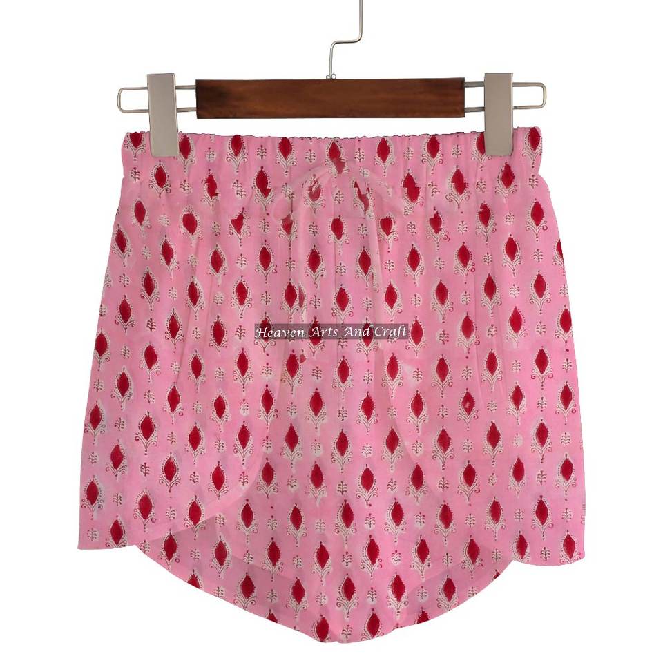 ชื่อสินค้า:กางเกงขาสั้นผ้าฝ้าย 100% พิมพ์ลายบล็อกมือ