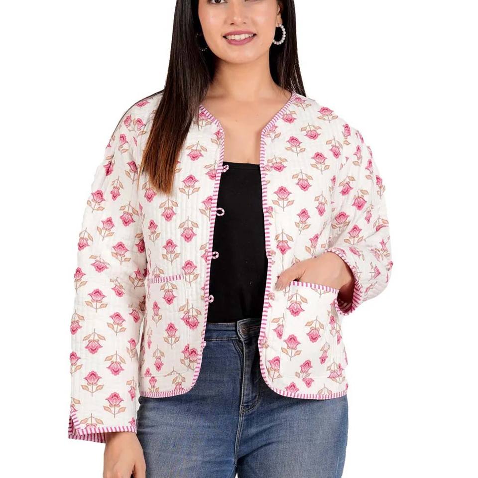 แจ็กเก็ตผ้าฝ้ายลายดอกไม้โบฮีเมียนสำหรับฤดูใบไม้ร่วง