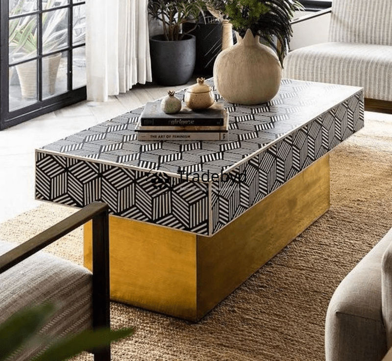 Floral Bone Inlay Coffee Table Artisan Made Statement Furniture for Modern and Classic Homes by Tradebyd