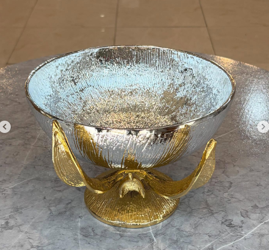 ชามใส่อาหารลายดอกไม้ถาดสำหรับใส่คุกกี้และเค้กชามใส่ถั่วถาดเสิร์ฟถั่วสีเงินและสีทอง