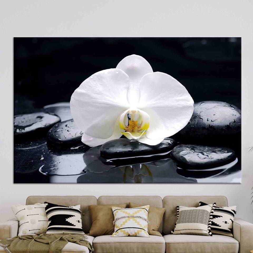 ภาพพิมพ์ลายดอกไม้บนผ้าแคนวาส: ศิลปะติดผนังกระจกเทมเปอร์ลายหินสปาและกล้วยไม้สุดหรู, ผ้าแคนวาสแบบห่อ