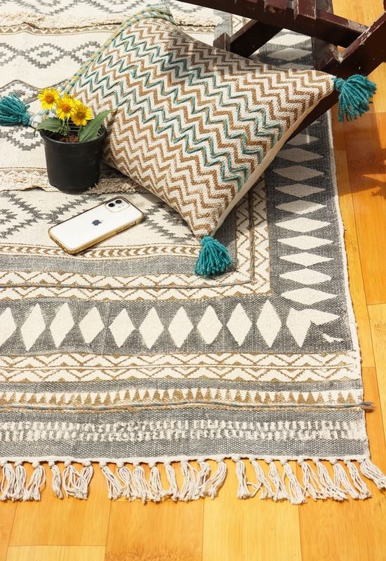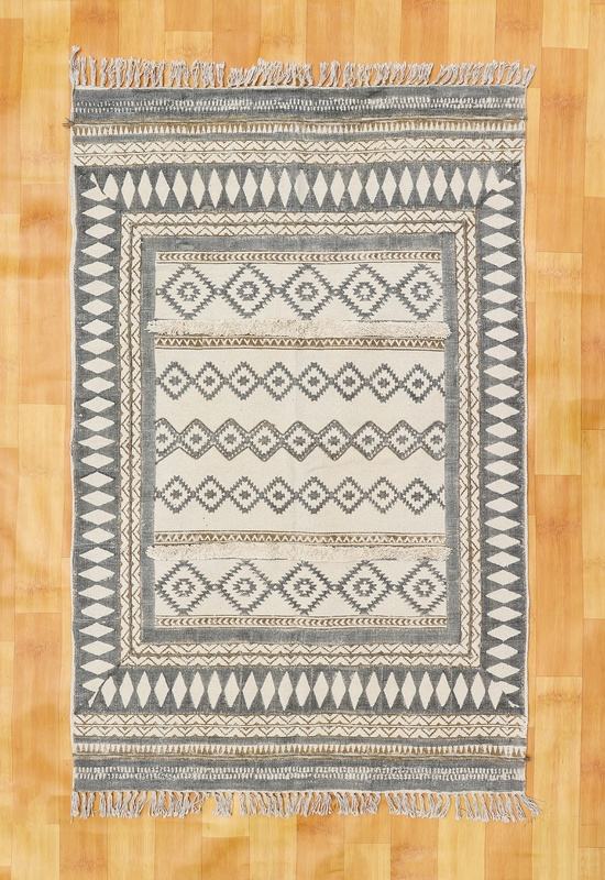 พรมลายดอกไม้ดีไซน์บล็อกพิมพ์ด้วยมือและวัสดุคอตตอน100% งานปักที่ยอดเยี่ยมสำหรับตกแต่งบ้าน