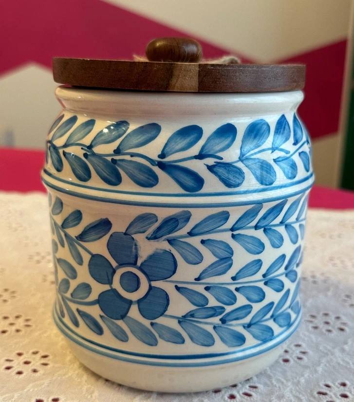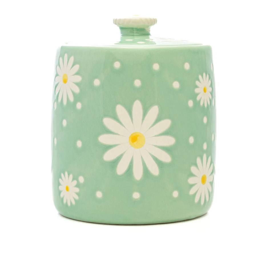 โถเก็บเซรามิคลายดอกไม้พร้อมฝาปิด ภาชนะเก็บอาหารแบบสุญญากาศ ทนทาน ใช้จัดระเบียบในครัว สวยงาม เหมาะสำหรับวางบนเคาน์เตอร์