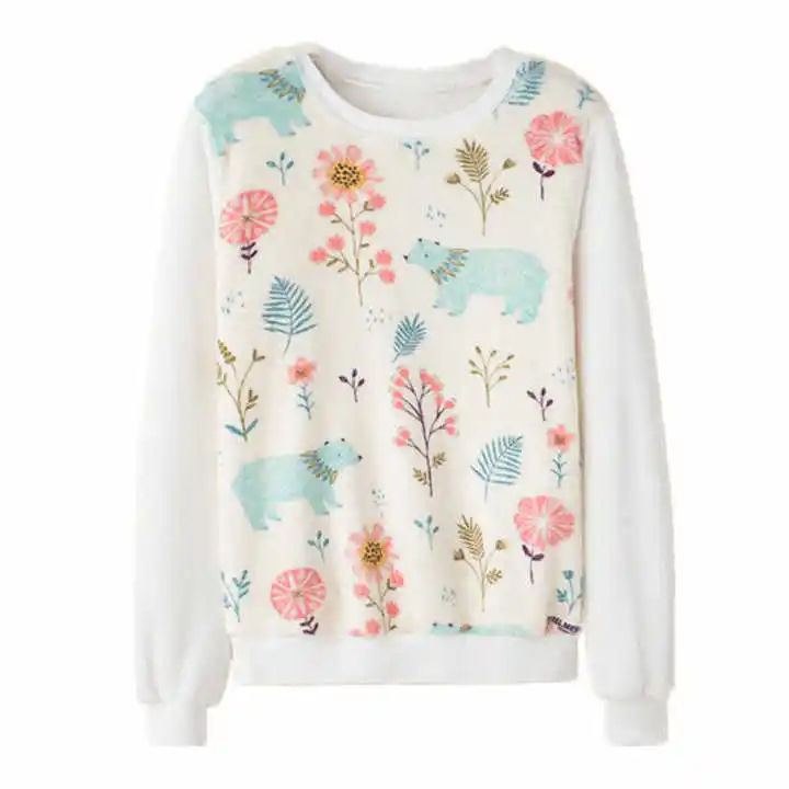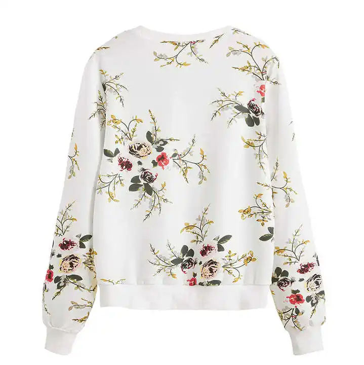 สเวตเชิ้ตคอกลมสำหรับผู้หญิงตกแต่งลายดอกไม้ผ้าคอตตอน100% สเวตเชิ้ตแบบถักทรงหลวมสำหรับผู้หญิงสเวตเชิ้ตปักลายกำหนดเองได้