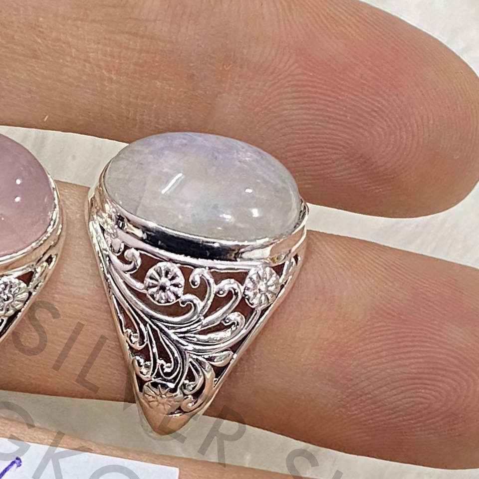แหวนเงินแท้ 925 ลายดอกไม้ ประดับด้วยพลอยโรสควอตซ์ธรรมชาติ สไตล์วิคตอเรียน ราคาขายส่ง