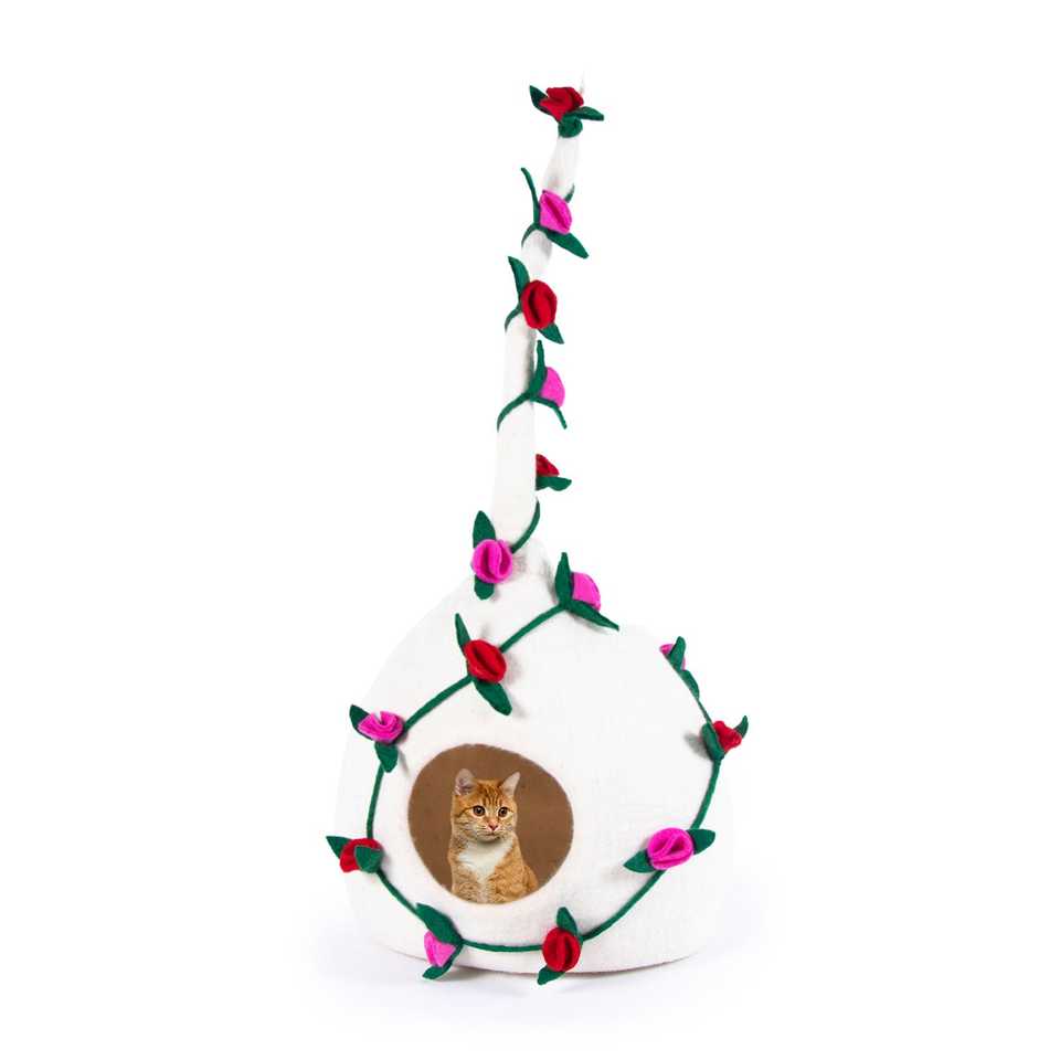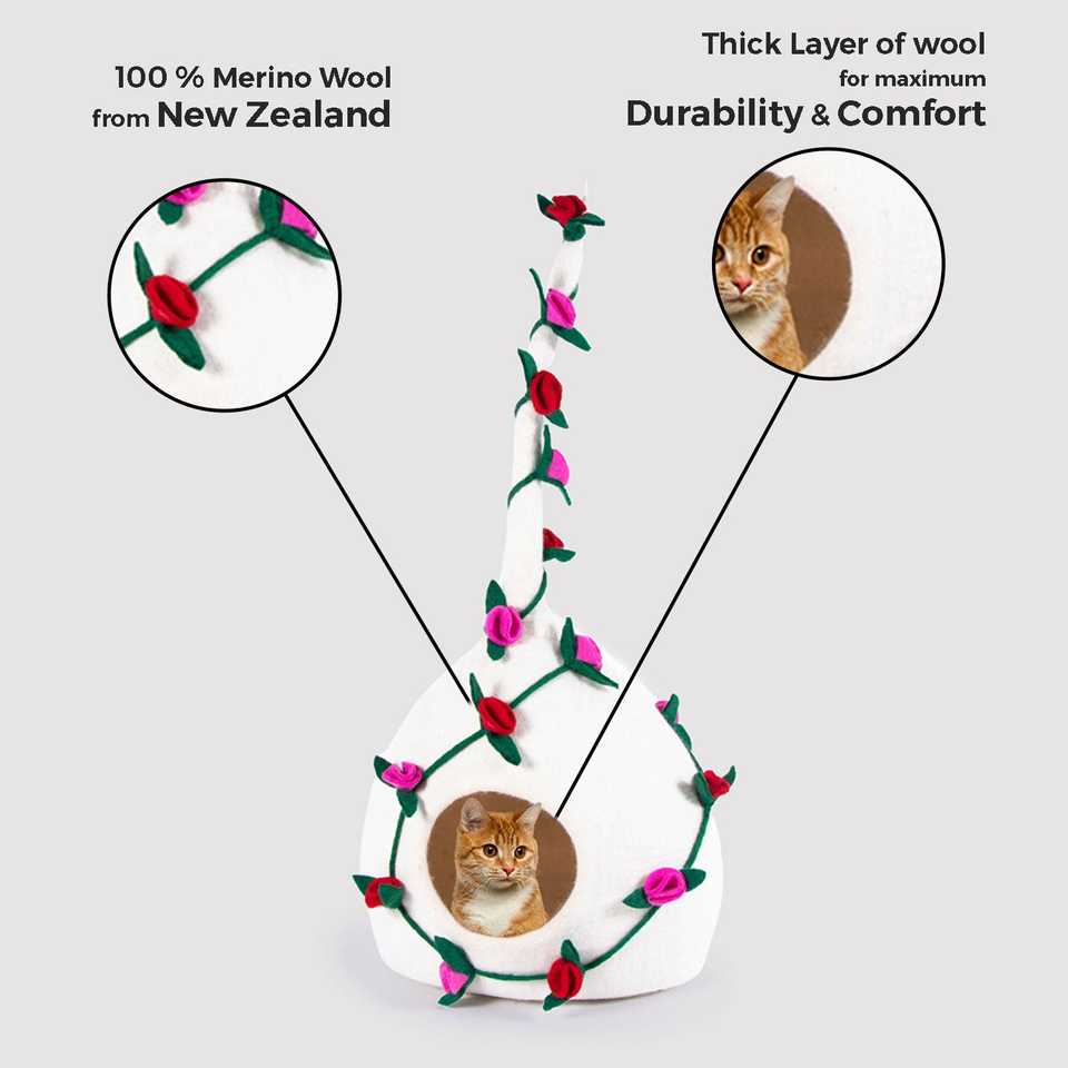 เตียงแมวลายดอกไม้ Feltandwool สำหรับเพื่อนขนฟู - เตียงสัตว์เลี้ยงน้ำหนักเบา 0.0 กก. ให้ความสบาย