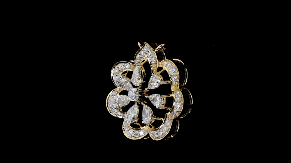 จี้เพชรเพาะเลี้ยงลายดอกไม้ในทองคำสีเหลือง | เครื่องประดับเพชรรูปดอกไม้ | ผู้ผลิตเครื่องประดับแบบ OEM ODM