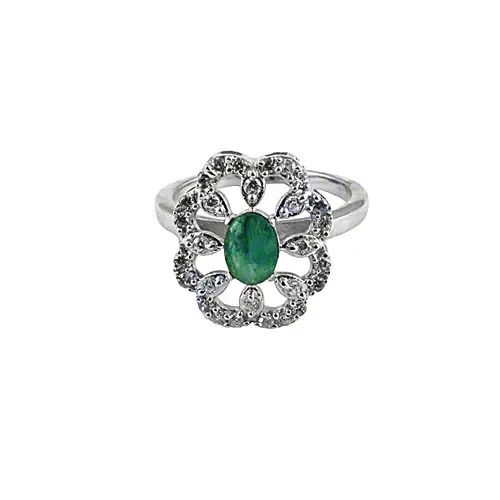 แหวนเงินประดับมรกต ดีไซน์ดอกไม้ ปรับขนาดได้ สำหรับผู้หญิง ชุบทอง 18K และโรเดียม แฟชั่นทันสมัย สไตล์ฝังประดับ ของขวัญ