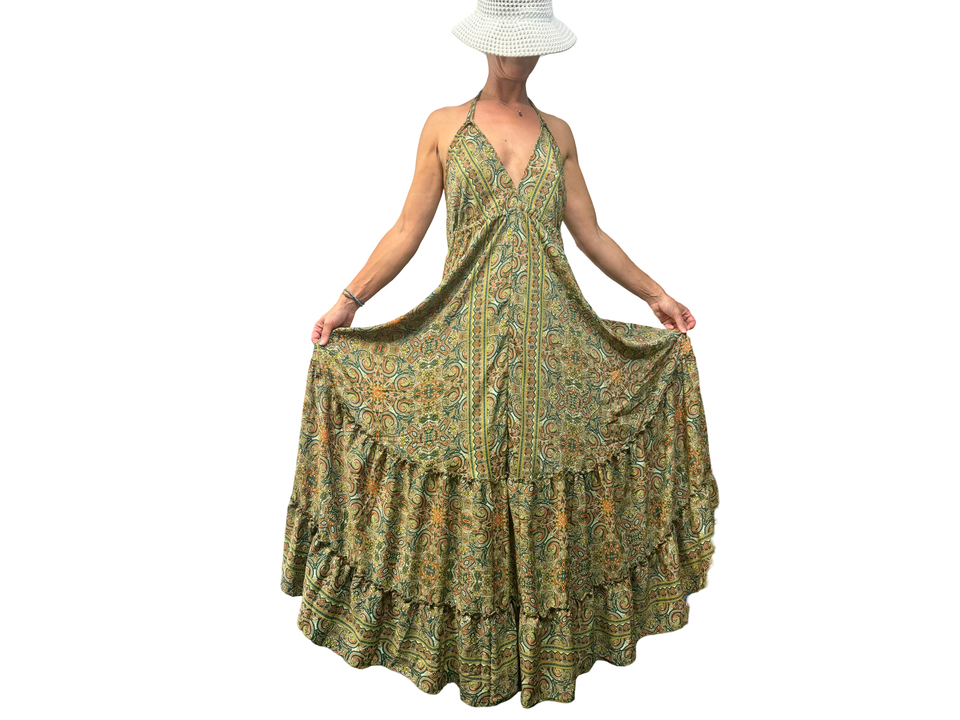 Floral Digital Printed Free Size Silk Dress Beach Casual Summer Spaghetti Slip Western Sweet Free Size Western Beach Sweet