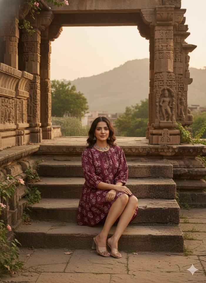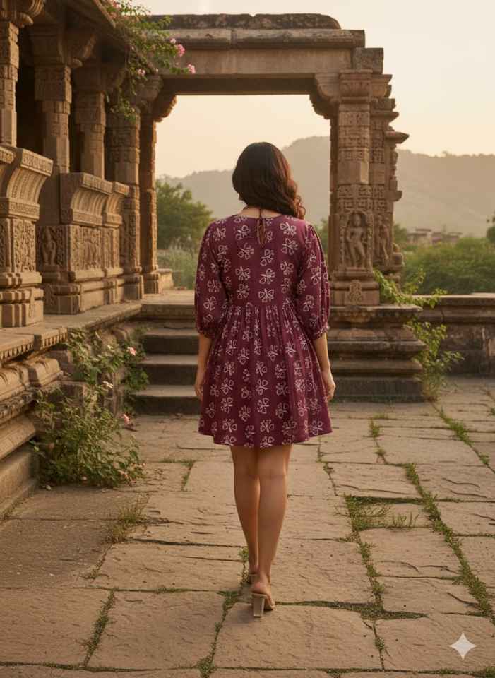 เดรสยาวปานกลางพิมพ์ลายดอกไม้ดิจิทัล ผ้าฝ้ายสั้นสำหรับฤดูร้อน เสื้อคลุมผู้หญิง คอวี สไตล์ชาติพันธุ์ โบฮีเมียน อินเดีย งานฝีมือ เป็นมิตรกับสิ่งแวดล้อม ธรรมชาติ