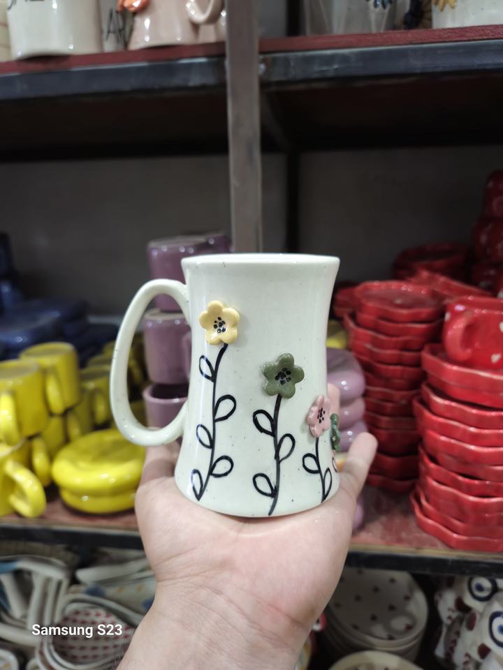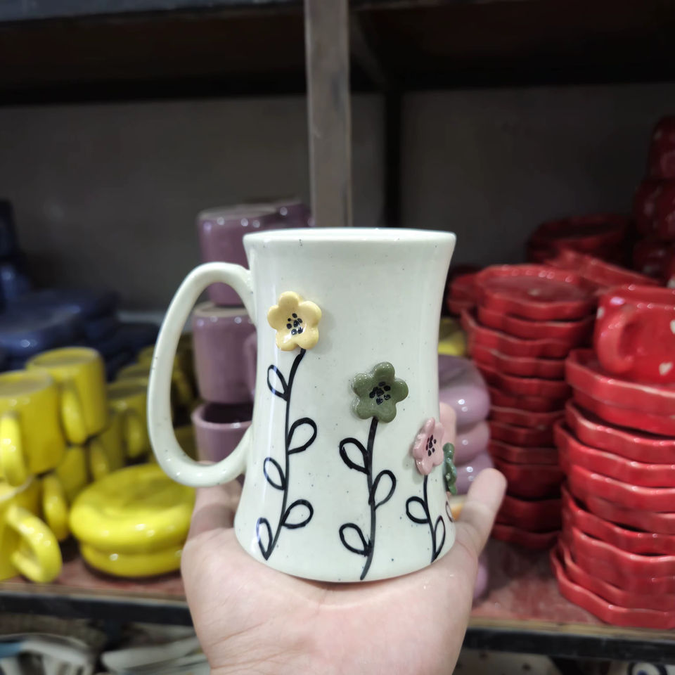 ถ้วยกาแฟลายนูนลายดอกไม้แก้วชานมขนาด350มล. ถ้วยไมโครเวฟใช้กับเครื่องล้างจานได้อย่างปลอดภัย